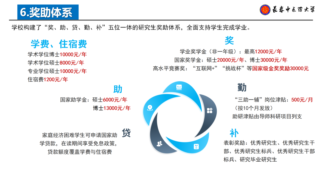 国家助学金:硕士6000元/年,博士13000元/年;
