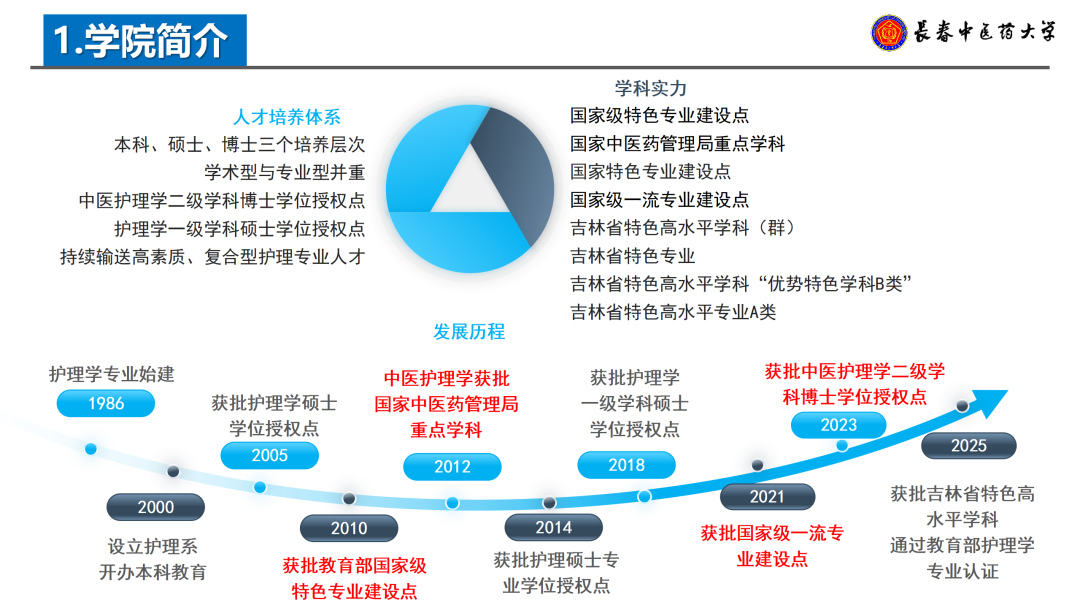 目前,学院已构建涵盖本科、硕士、博士三个层次,学术型与专业型并重的人才培养体系,成为中医护理学二级学科博士学位授权点,并拥有护理学一级学科硕士学位授权点,持续为社会输送高层次、应用型护理专业人才。