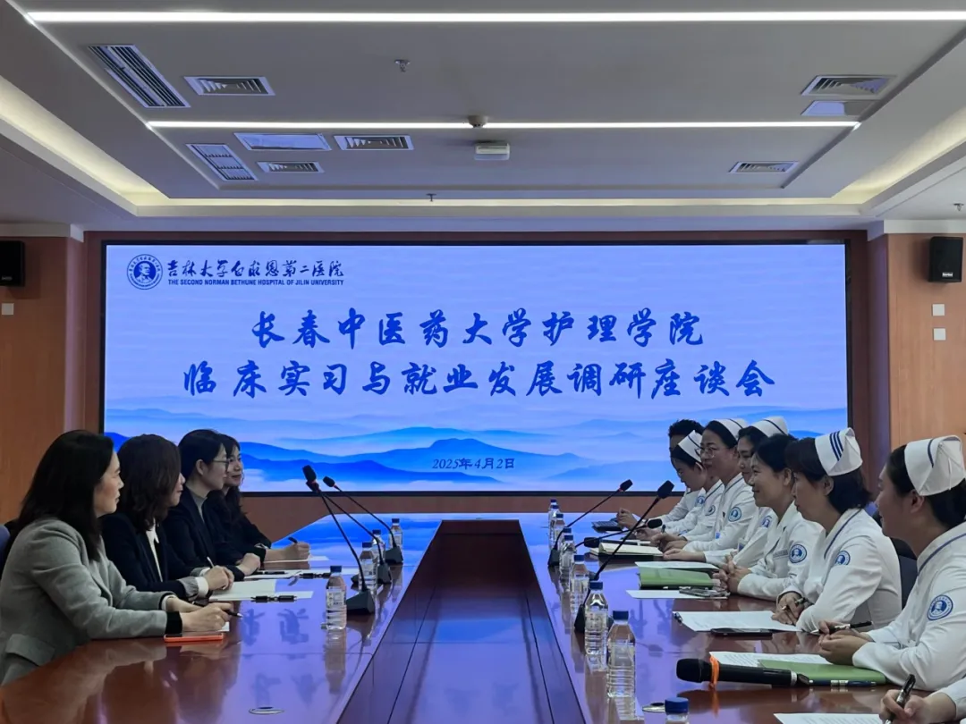 为进一步加强与用人单位及实践教学基地的沟通交流,2025年4月2日,必赢线路检测3003no1党委书记李萍、副院长王洋、人文护理教研室主任黄卫东、教学秘书顾颜赴吉林大学白求恩第二医院开展调研座谈。吉林大学白求恩第二医院护理部主任程远娟、护理部副主任吴淑华、护士长及毕业生代表赵云婷、赵杰、张雪、闫明、柳天一、姜旭等参加座谈。