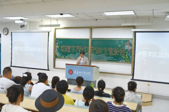 新生见面会由赵彧老师主持,她从专业认同到校园生活、从职业规划到军训纪律,为新生全面解读大学新生活的方方面面。在随后的答疑环节,同学们踊跃提问,初入校园的迷茫渐渐消散,对护理专业和未来路径有了更清晰的认识。